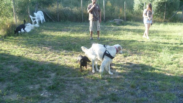 Entra anche Inu che va immediatamente a conoscere Oliver e Pascal, gli unici due cani che non aveva mai incontrato. Pascal non è contento del suo comportamento e dopo poco comincia a metterlo sotto pressione in maniera così invasiva che decido di intervenire passando tra di loro ed invitandoli così a separarsi.