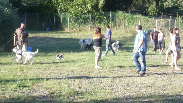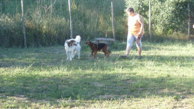 Siamo ormai al termine della serata e Antonella e Marco si fermano vicini per favorire un'ulteriore interazione tra i loro cani prima di mandare Margot a riposarsi, stanca ma sicuramente con un piccolo bagaglio di esperienza in più.