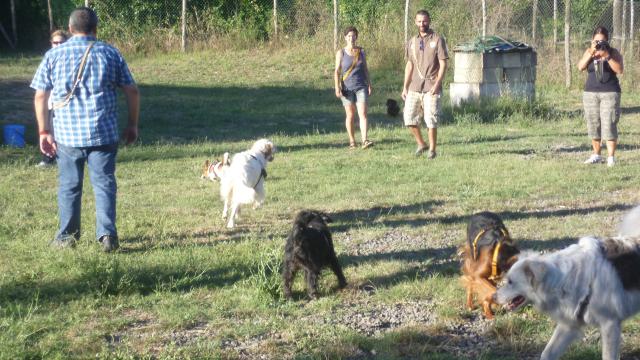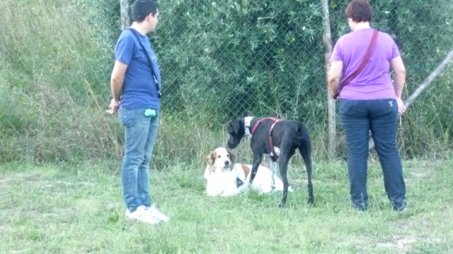Come previsto all'inizio Mila e Dea si sono messe a correre felici alla ricerca di qualcuno con cui giocare, appena si sono calmate un po' abbiamo fatto entrare Zara che è andata immediatamente vicino alla recinzione per inseguire le macchine che passavano lungo la strada. Ho chiesto subito a Valentina e Marco di avvicinarsi in modo che i nostri cani “agevolatori in erba” potessero valutare la situazione ed effettivamente il loro intervento ha avuto successo aiutando Zara ad uscire elegantemente dalla situazione e tornare al richiamo di Daniela.