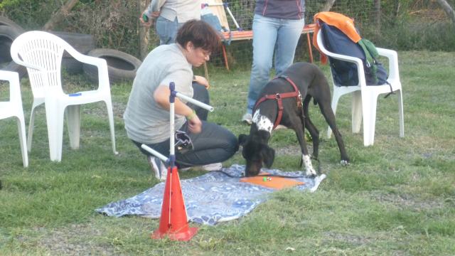 Vedere Inu così concentrato sul compito nonostante i tanti cani presenti e le distrazioni ambientali è stato un grosso successo e già per questo Sveva potrebbe ritenersi soddisfatta. All'inizio Inu faceva fatica anche a mettersi a terra per cominciare il lavoro ma, piano piano si è concentrato sempre di più...ora bisogna solo trovare il lato più comodo per farlo rotolare!