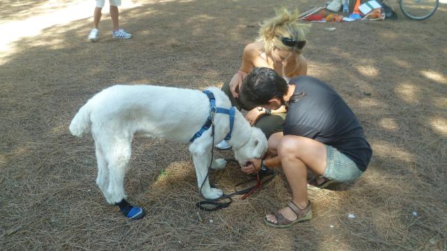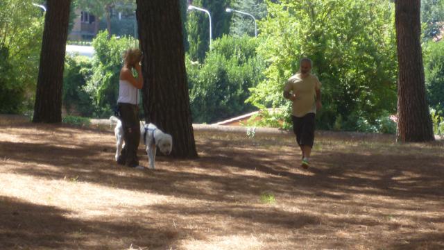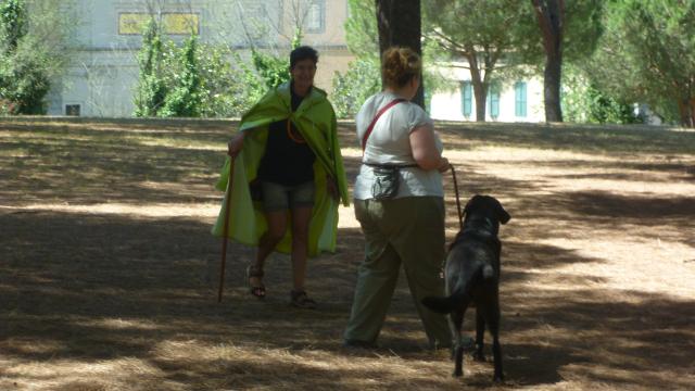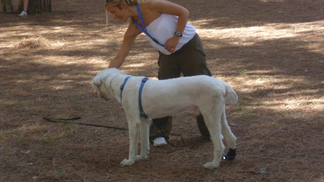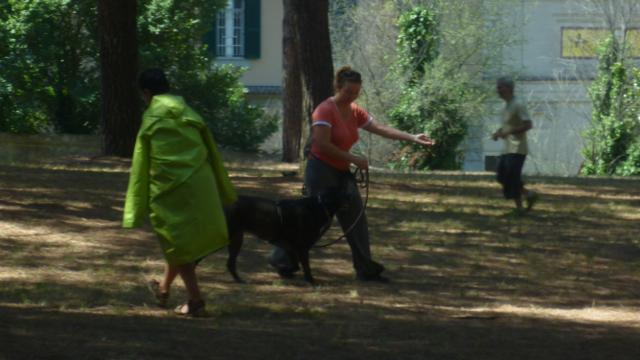La giornata di esercitazione si è chiusa con un'ulteriore verifica che l'abilità a spostare il cane fosse acquisita da parte di tutti i conduttori, i binomi sono stati invitati a camminare lungo un vialetto e ad incrociare in rapida successione quattro persone che camminavano, ad ogni incontro il proprietario doveva gestire l'incrocio, effettuando con il proprio cane una ampia curva oppure far cambiare lato al cane utilizzando le tre modalità apprese.