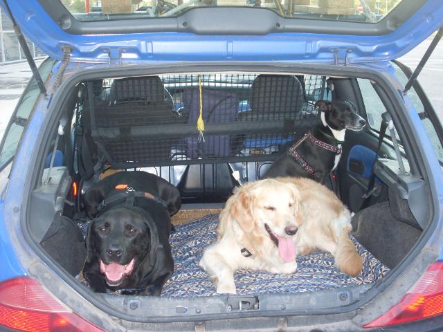 Il nostro viaggio comincia con qualche prova "logistica" di sistemazione in auto: sedile dietro completamente abbassato e spazio sufficiente per 3 cani, li lasciamo interagire per un po' liberamente con la loro "cuccia-mobile" con il portellone aperto in un ampio parcheggio finché la "biondina" si convince che non è poi tanto male stare lì dentro tutti e tre insieme e … via, si parte! In macchina i cani dormono tranquilli, una sola sosta in autostrada e la sera già prendevamo possesso della nuova casa!