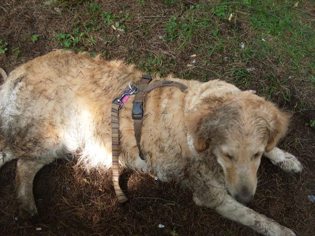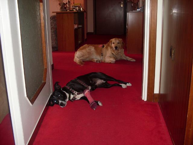 Zoe, "la bionda" per gli amici, golden retriever 5 anni, è il cane del vicePresidente dell'associazione, amica inseparabile dei nostri cani, perciò abbiamo deciso di portarla con noi, mentre la sua proprietaria era impegnata (anche lei!) in un viaggio di lavoro. E' arrivata da cucciola e ora divide le attenzioni della sua proprietaria con il gatto di casa. E' un cane dolcissimo, socievole con persone, bambini, cani e gatti! Si adatta facilmente a qualsiasi situazione ed ha accettato di buon grado questa vacanza senza la sua "mamma", ha preso con sé la sua copertina, la ciotola, il kong e la spazzola e ci ha seguito scodinzolando.
