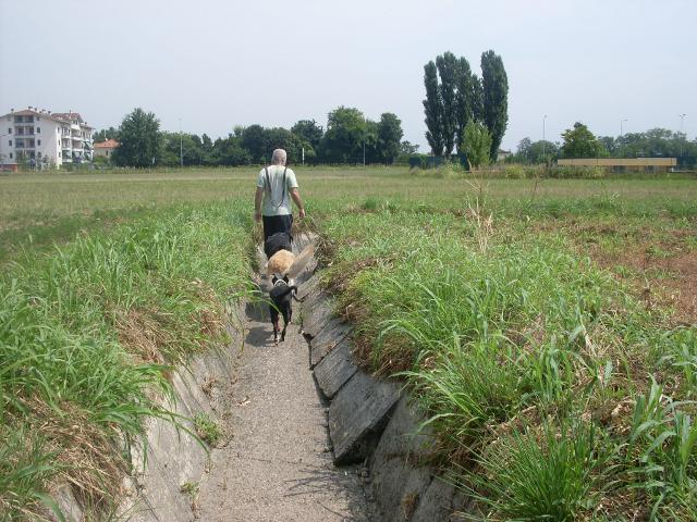 Le giornate si susseguono tra passeggiate per campi e fugaci bagni nei canali. Durante una delle nostre passeggiate ci ritroviamo all'ingresso del bosco del WWF di Vanzago, paese vicino, già pregustavamo un giro esplorativo quando notiamo il cartello che vieta l'ingresso ai cani. Peccato, si torna indietro lungo la strada che costeggia la ferrovia, almeno Buck fa un po' di lavoro di desensibilizzazione al rumore del treno.